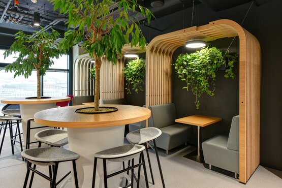 Materialele folosite conferă mobilierului modern accente naturale. Acestea sunt puse în valoare de utilizarea selectivă a plantelor de interior, care conferă spațiului o atmosferă inspirată.