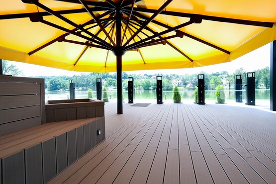 UPM ProFi Piazza Pro oferă cea mai bună rezistență la pete și durabilitate a culorii, chiar și în cele mai dificile medii, cum ar fi piscinele publice, grătarele în aer liber și locațiile la altitudini mari. Terasa compozită sustenabilă conține 75% materiale reciclate. Această terasă care necesită puțină întreținere este fabricată în Germania și oferă o garanție de până la 20 de ani pentru utilizare comercială.