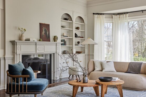 Designul interior tranzițional este un amestec dintre stilul tradițional și modern. Adunarea pieselor din cele două stiluri creează un design unic, care actualizează clasicii cu o senzație coerentă și modernă și echilibrează luxul cu confortul, masculinul cu femininul și antichitățile cu piesele noi.