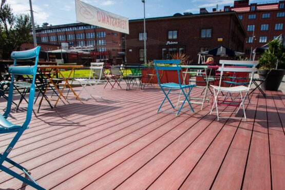 Restaurantul Teurestamo din Helsinki este cunoscut nu numai pentru preparatele gustoase, ci și pentru mediul ambiant. Continuând această tradiție, au decis să construiască o terasă în aer liber, la fel de calitativă ca și restaurantul în sine. UPM ProFi piazza în nuanța Red Padouk combină într-un mod unic performanța Best in Class cu modernismul. Rezultatul? Imaginile vorbesc de la sine!