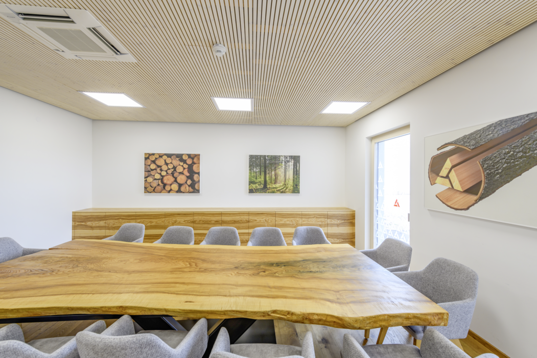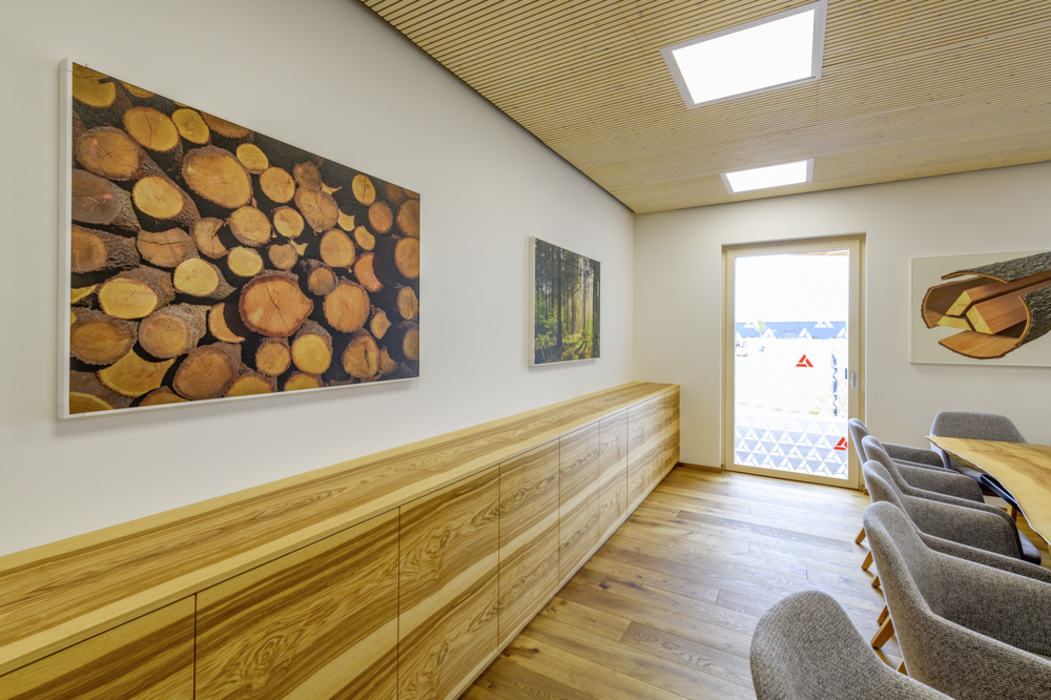 Furnirul poate fi folosit în numeroase aplicațiila interior: de la dulapuri și birouri, până la lambriuri furniruite. Atât clienții, cât și colegii noștri din St. Florian se bucură de combinații ale materialelor armonizate din punct de vedere vizual. În zona de depozit, s-au preferat soluții de mobilier extrem de flexibile: acestea nu doar că au fost asamblate în propria unitate de producție a pieselor de mobilier, dar sunt mobile și prin urmare, pot fi utilizate oriunde este nevoie de ele.