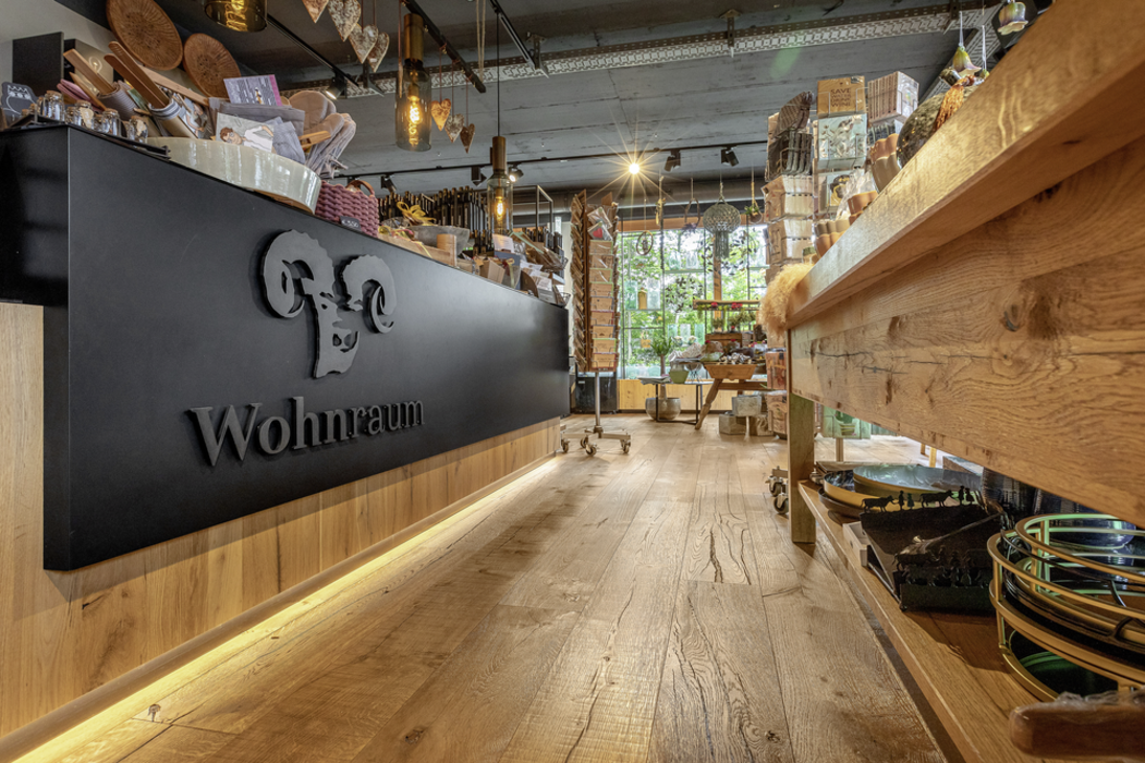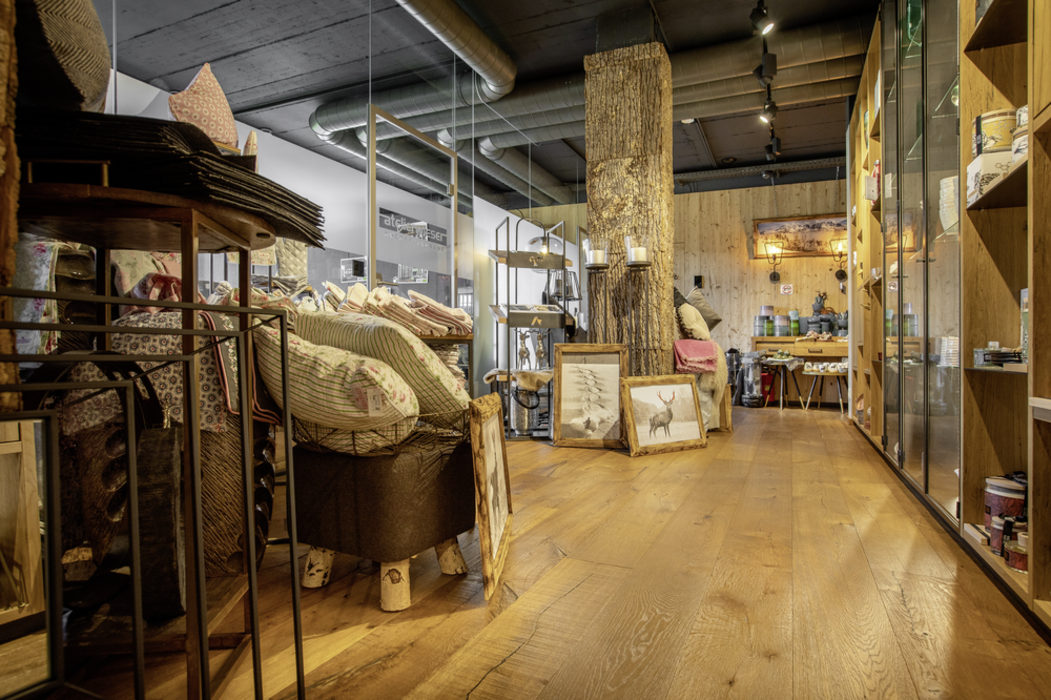 Noul magazin de prezentare din Ellmau, care este foarte frecventat de turiști, este un centru de atracție pentru bunul gust. Fie că este vorba de vin, cafea sau accesorii pentru casă - magazinul oferă o gamă largă de produse pentru cunoscători. Bineînțeles, aceste lucruri frumoase de zi cu zi trebuie să fie prezentate într-o ambianță demnă, care să reziste și la provocările zilnice. Prin urmare, J. A. F. Kramsach a furnizat plăci de stejar în două straturi de înaltă calitate, realizate din lemn vechi, care punctează prin eleganța lor rustică și rezistența impresionantă