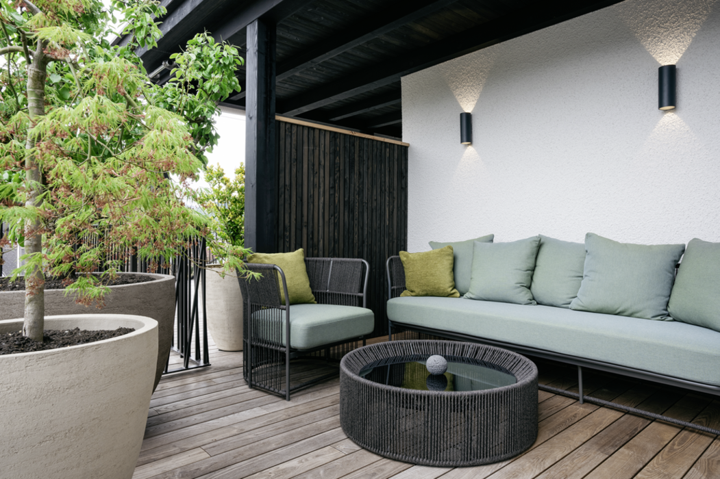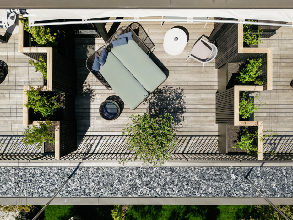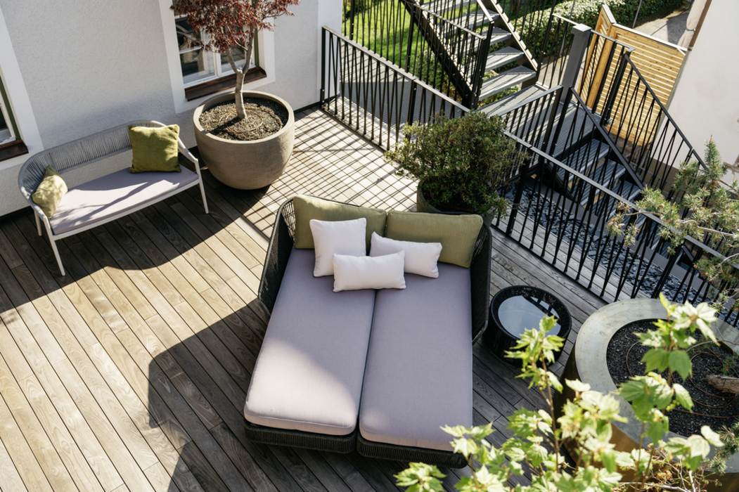 Spre exemplu, Plăcile melaminate în nuanța gri teracotă sunt baza pentru o mare varietate din mobilierul întregului ansamblu. Cheresteaua din molid și stejar conferă un aspect natural încăperilor. Un punct de atracție cu totul și cu totul special poate fi regăsit în spațiile exterioare: podelele de terasă din Frasin Thermo. Tratamentul aplicat podelelelor le face ideale pentru utilizarea la exterior, unde adesea există umiditate. Axându-se pe materiale calitative, proprietarii clădirii au reușit să creeze o oază de bunăstare care oferă oricărui vizitator un feeling aparte.