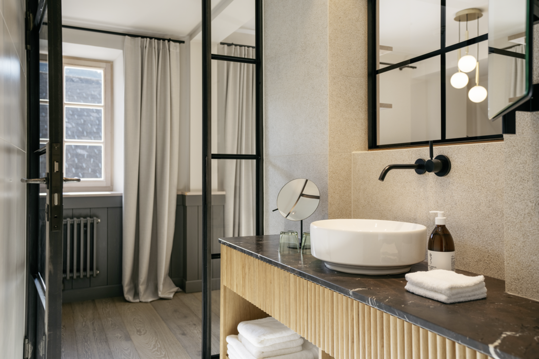 Au decis să renoveze proprietatea și să o transforme într-un loc de relaxare, recreere și plăcere culinară. A devenit rapid clar că pentru proiect trebuiau folosite numai materiale de înaltă calitate. Peisajul divers din jurul lacului Lunz a servit drept sursă de inspirație pentru designul interior al refugiului rezultat, care combină estetica rustică cu elemente delicate și naturale din lemn. Cu Plăci Melaminate, cherestea, podele de terasă din lemn termotratat, J. u. A. Frischeis oferă o gamă largă de produse care reflectă pe deplin conceptul de design interior al refugiului.