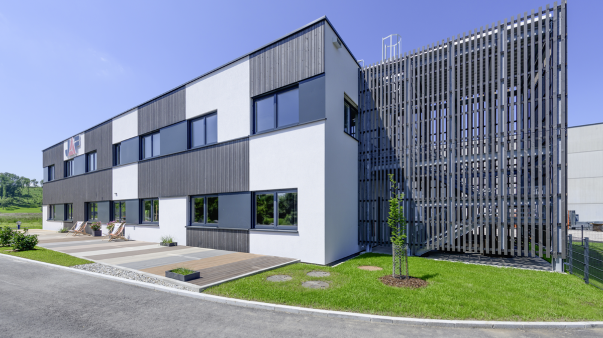 În cadrul construcției sucursalei J. u. A. Frischeis din St. Florian , au fost utilizate diverse produse structurale din gama J. u. A.