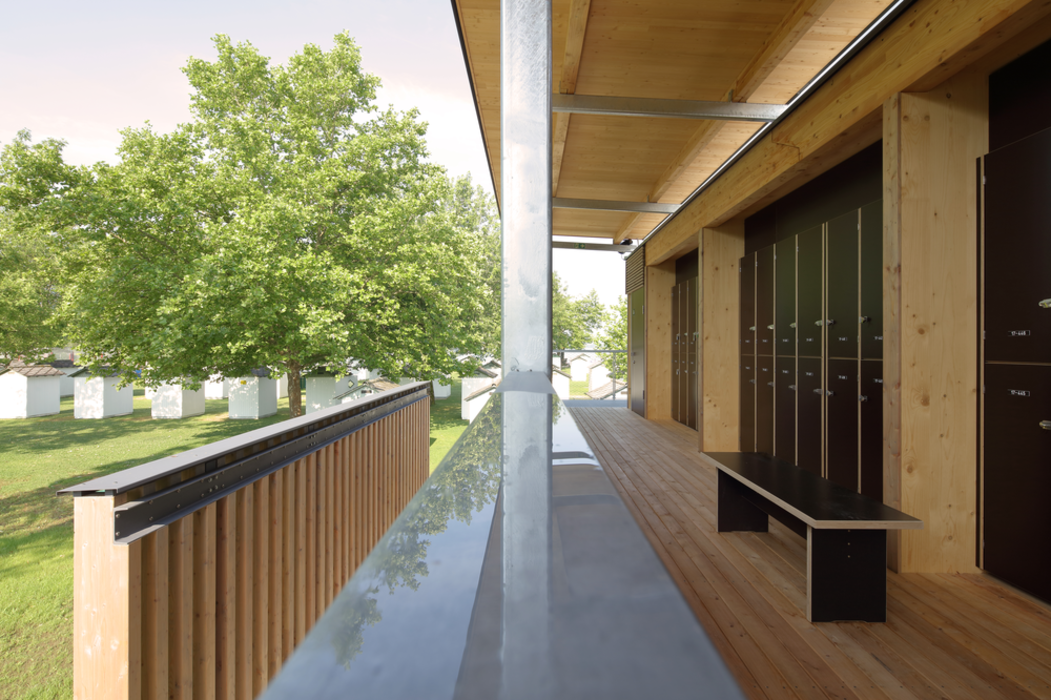 De mai bine de 100 de ani, ștrandul din Klagenfurt, situat pe lacul Wörthersee, invită vizitatorii să facă o baie în apele azurii. O gamă largă de produse marca J. u. A. Frischeis din lemn a fost utilizată pentru o extindere de succes. Acest lucru se datorează faptului că 455 de cabine și 524 de compartimente au fost create într-o aripă nouă, care emană un farmec deosebit. J. A. F. Villach a furnizat nu numai placajul, ci și lemnul pentru construcția cadrului ușilor. În plus, atât interiorul, cât și exteriorul au fost placate cu plăci interioare și exterioare furnizate de J. u. A. Frischeis.