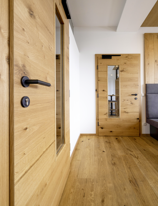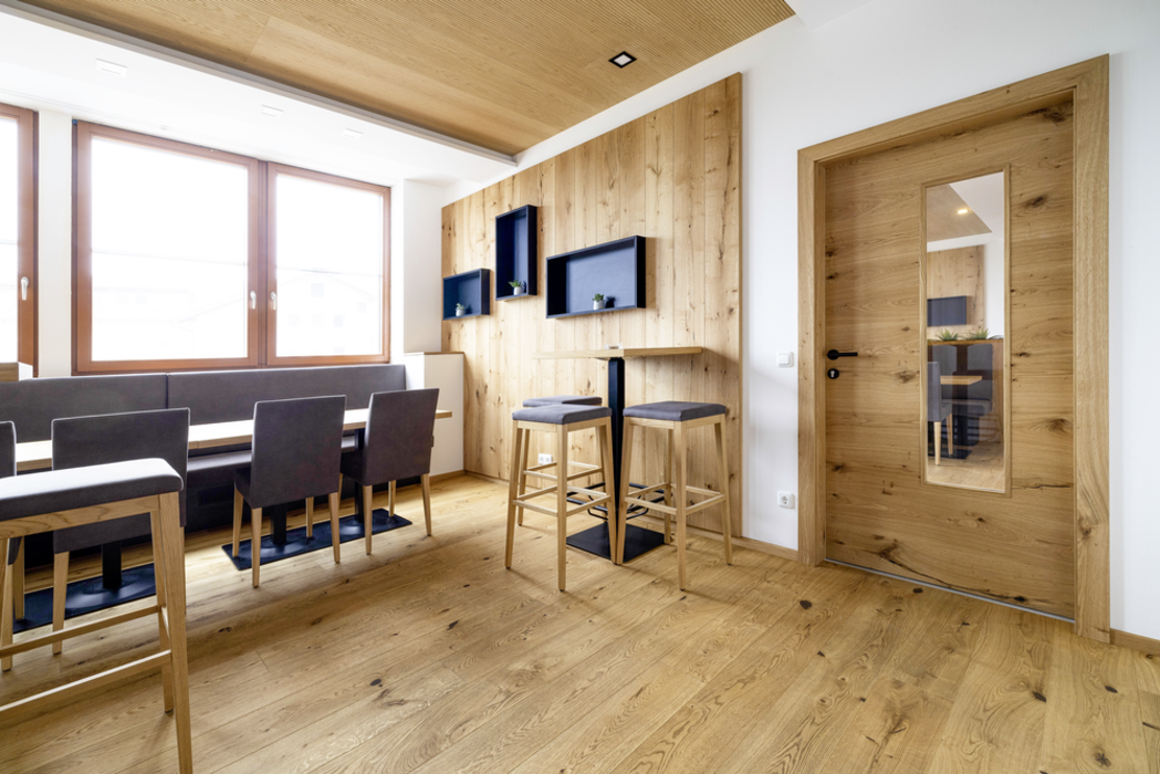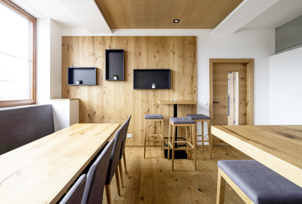 Sala de recreere din cadrul J. u. A. Salzburg a fost reconcepută ca parte a lucrărilor de renovare. În mod firesc, furnirul, alături de alte produse din gama J. u. A a jucat un rol important.