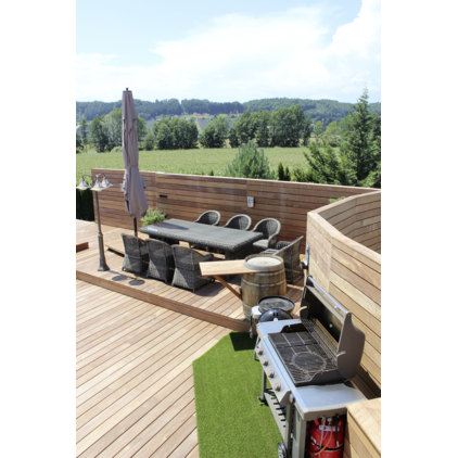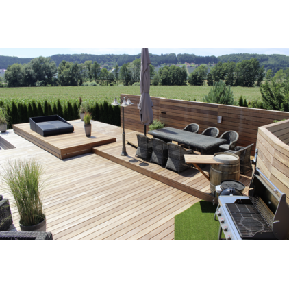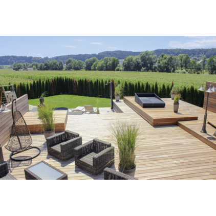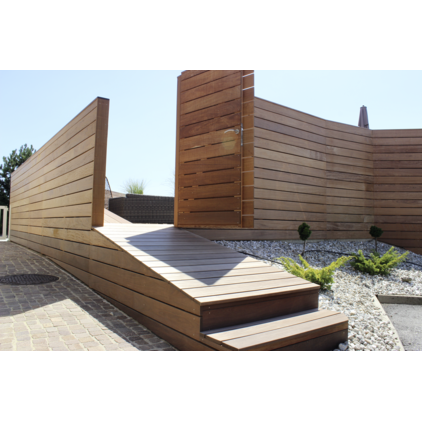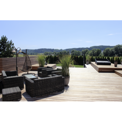 Extrem de longeviv, stabil din punct de vedere al dimensiunii și rezistent la forțe mecanice. Având aceste caracteristici și un aspect lucios, lemnul Ipé din America de Sud este foarte portivit pentru amenajarea terasei.