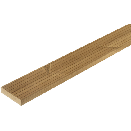 Pe lânga o imagine impunătoare a terasei, elementele pentru terase din lemn de pin conferă o atingere sigură și creeaza un ambient călduros. Modificarea termică înzestrează lemnul cu stabilitate si durabilitate, putând fi utilizat în aer liber pentru perioade îndelungate.