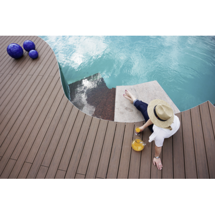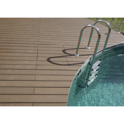 Earthwood Evolutions, lemnul pentru terase WPC de la TimberTech impune standarde în ceea ce privește rezistența, este stabil și iși păstrează vie culoarea de-a lungul anilor. Datorită profilului lor masiv, elementele de terasă Earthwood Evolutions conferă o senzație sigură la pășire. Acestea au o structură asemanatoare lemnului, modelul și nuanțele amintind de lemnul natural. Cele trei decoruri Pacific Teak, Pacific Rosewood si Pacific Walnut se pot combina și astfel pot conferi un aspect similar celui natural.